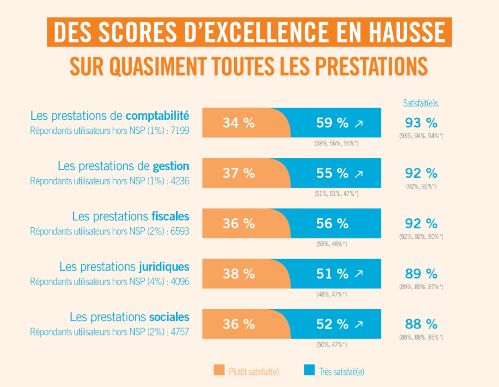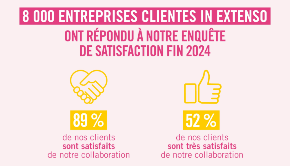 Afin d’améliorer continuellement la qualité de ses services, le Groupe In Extenso mène régulièrement une enquête de satisfaction auprès des clients de ses 280 agences. En 2024, 8 000 entreprises clientes ont répondu à notre questionnaire. Verdict : plus d’un client sur deux est “très satisfait” de notre collaboration et notre taux de recommandation (61%) continue sa hausse !