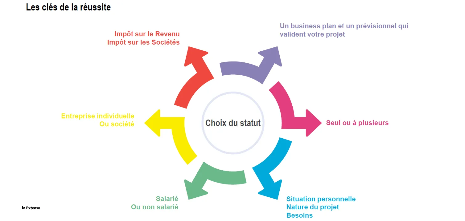 En résumé, il faut avoir validé son business plan, il faut savoir si on démarre seul ou à plusieurs, il faut avoir pris en compte votre situation personnelle pour choisir le statut salarié ou non-salarié, l’entreprise individuelle pour connaitre l’impact que cela aura sur votre impôt sur le revenu ou sur les sociétés.