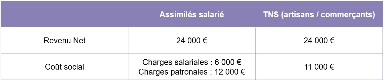 Pour une rémunération de 24 000 euros net annuelle, il y a une différence de coût total de 7 000 euros en faveur des travailleurs non-salariés.