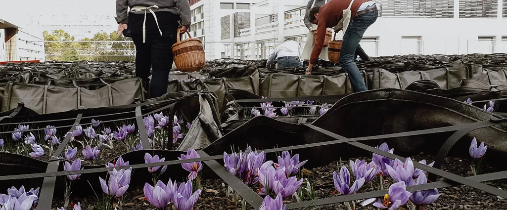 Nous avons choisi de cultiver du safran car cette plante est passionnante en terme culturel, gastronomique et botanique. Elle pousse très bien en ville car elle a un cycle végétatif inversé. Elle est en dormance l’été et fleurit à l’automne quand la ville est un peu triste. C’est un végétal résilient qui pousse en bacs sur les toits, dans des conditions compliquées, sans irrigation.