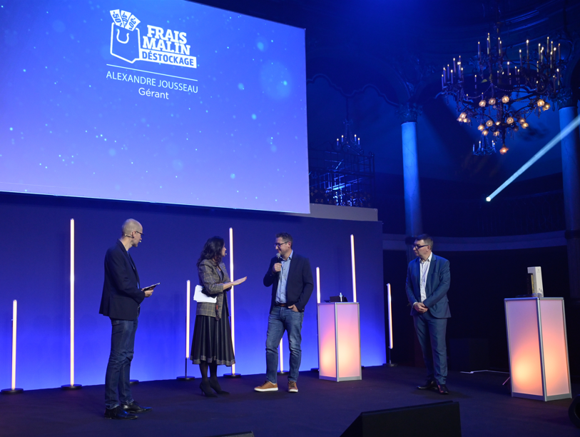Lors de la cérémonie nationale, Jean-François Trouillard, Directeur général délégué d’In Extenso en charge du marché des PME et de la RSE, a remis le prix “Durable, Solidaire et Éco-responsable” à l’entreprise Frais Malin Déstockage, qui exploite quatre magasins de déstockage alimentaire dans la Sarthe.